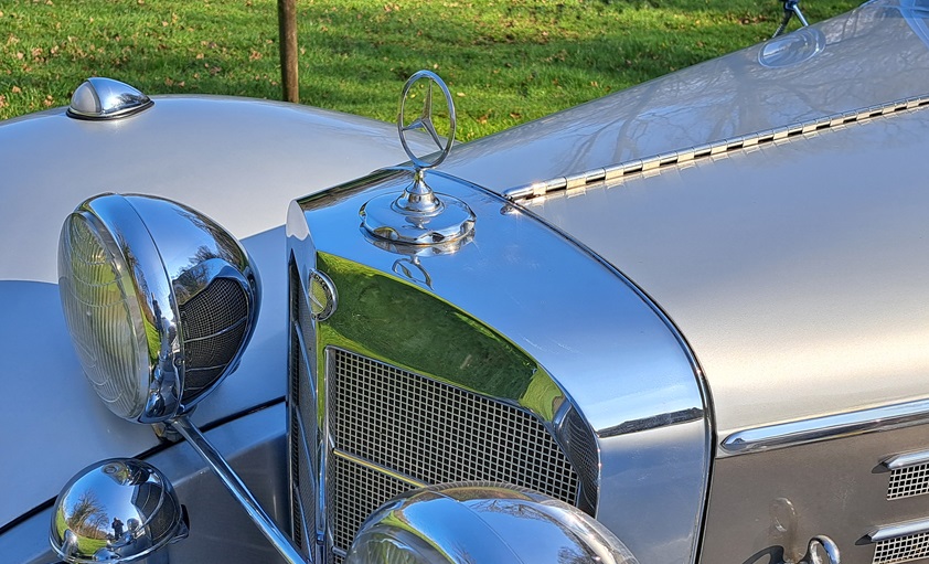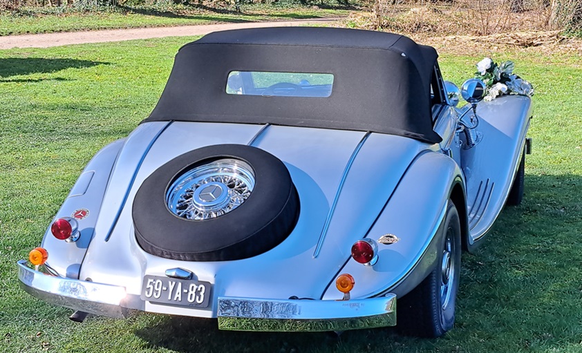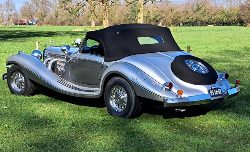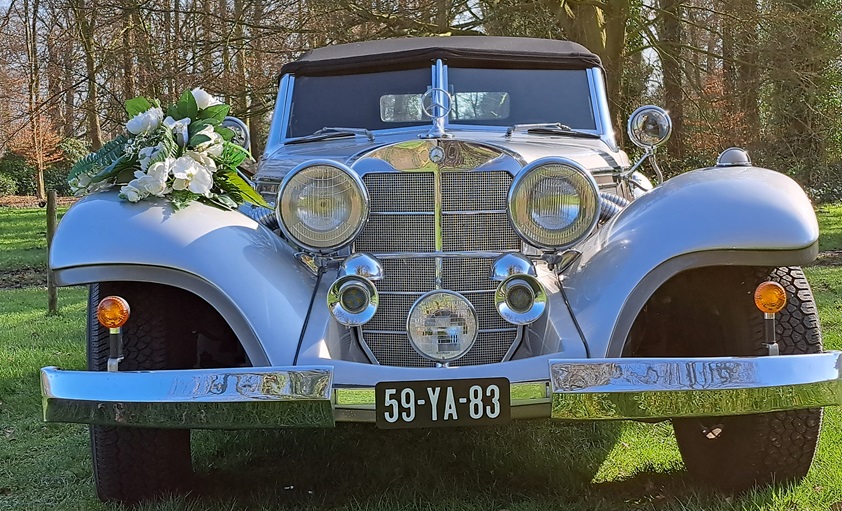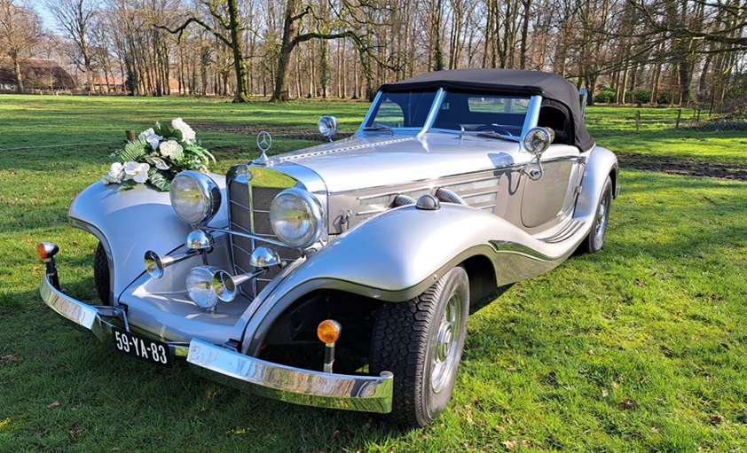 Prachtige zilverkleurige Mercedes 540K uit 1936. De ultieme droomauto, enne...deze trouwauto mag je zelf rijden!.